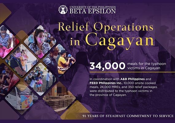 On November 22, 2020, the fraternity distributed 34,000 meals to the typhoon and flood victims in Cagayan province. In coordination with A&B Philippines and FEED Philippines Inc., 10,000 onsite cooked meals, 350 relief packages, and 24,000 MREs (meal, ready-to-eat) from the Department of Health reached the people of Brgy. Mocag in the municipality of Baggao and Brgy. Cataggaman Nuevo in the city of Tuguegarao.